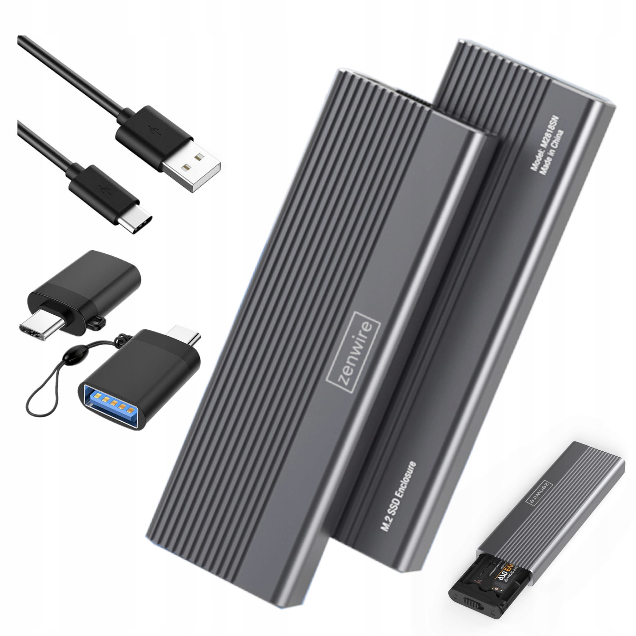 - Hölje för USB 3.0 NVME 10GB/sec SSD från Zenwire M2818S,